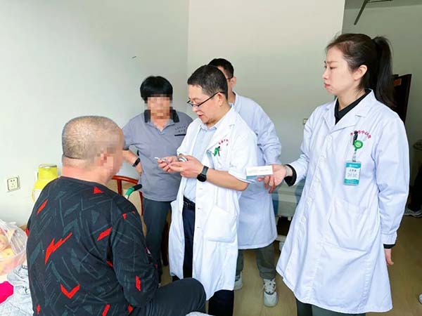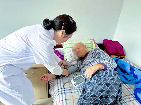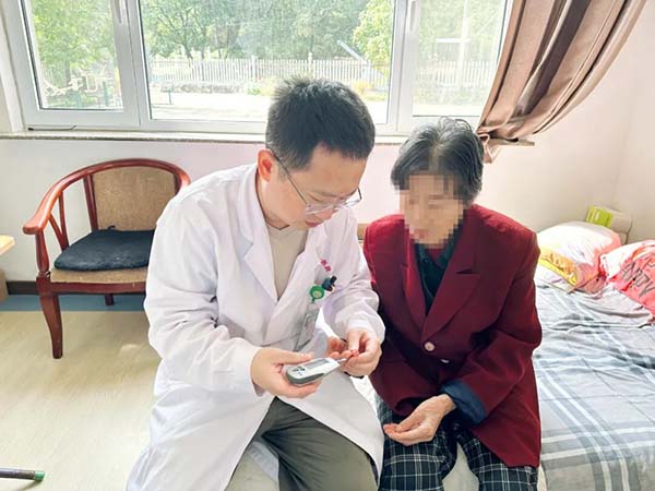 专业服务环节更显用心。王守涛书记为敬老院护理员进行了药品相关知识的讲解,通过安全、合理用药,保障老人的用药安全。王海良主任走到老人床旁,以“一对一”的形式问诊,详细询问每位老人病史、服药史及血糖、血压控制情况,针对患有糖尿病、高血压疾病的老年群体精准提供用药指导与用药方案的调整建议。此外,志愿者们还为近30名孤寡老人及护理员测量血压、血糖,并发放疾病预防、合理用药、饮食指导等宣传材料,切实提升老人们的健康意识。